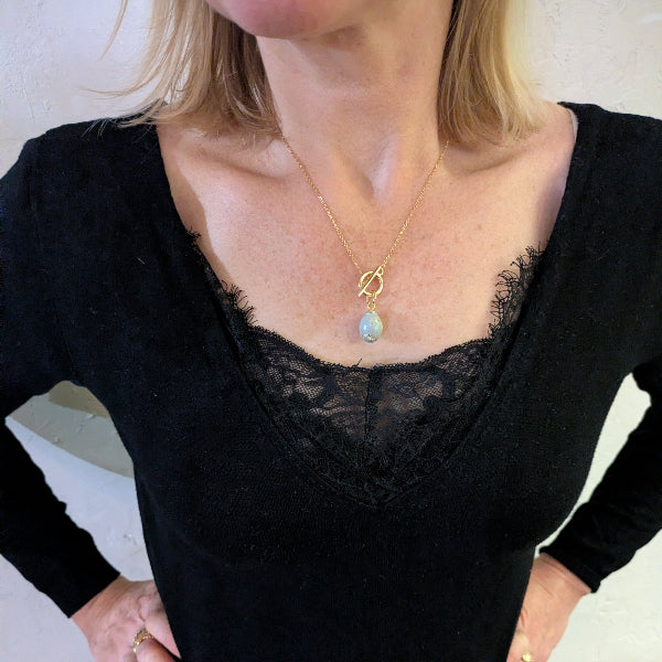 Le Collier Ovale Doré combine l’élégance d’une chaîne dorée avec la matière brute du béton. Son pendentif, une bille ovale en béton, présente des incrustations de feuille d’or, créant un subtil jeu de lumière et un bijou à la fois contemporain et raffiné. La chaîne se ferme à l’avant grâce à un fermoir élégant, faisant de ce collier un bijou à porter aussi bien au quotidien qu’en occasion spéciale.